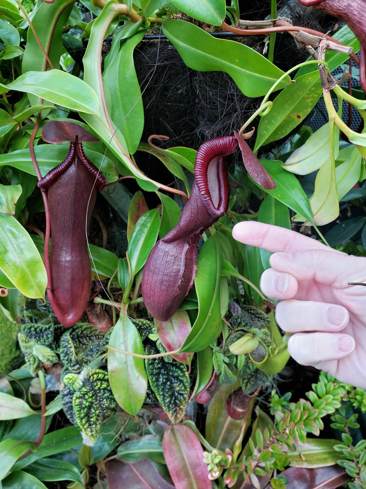 Looks like baby Audrey from the Little Shop of Horrors. Hans tentatively approached it with his finger so I could show scale, but he didn't want to get too close.